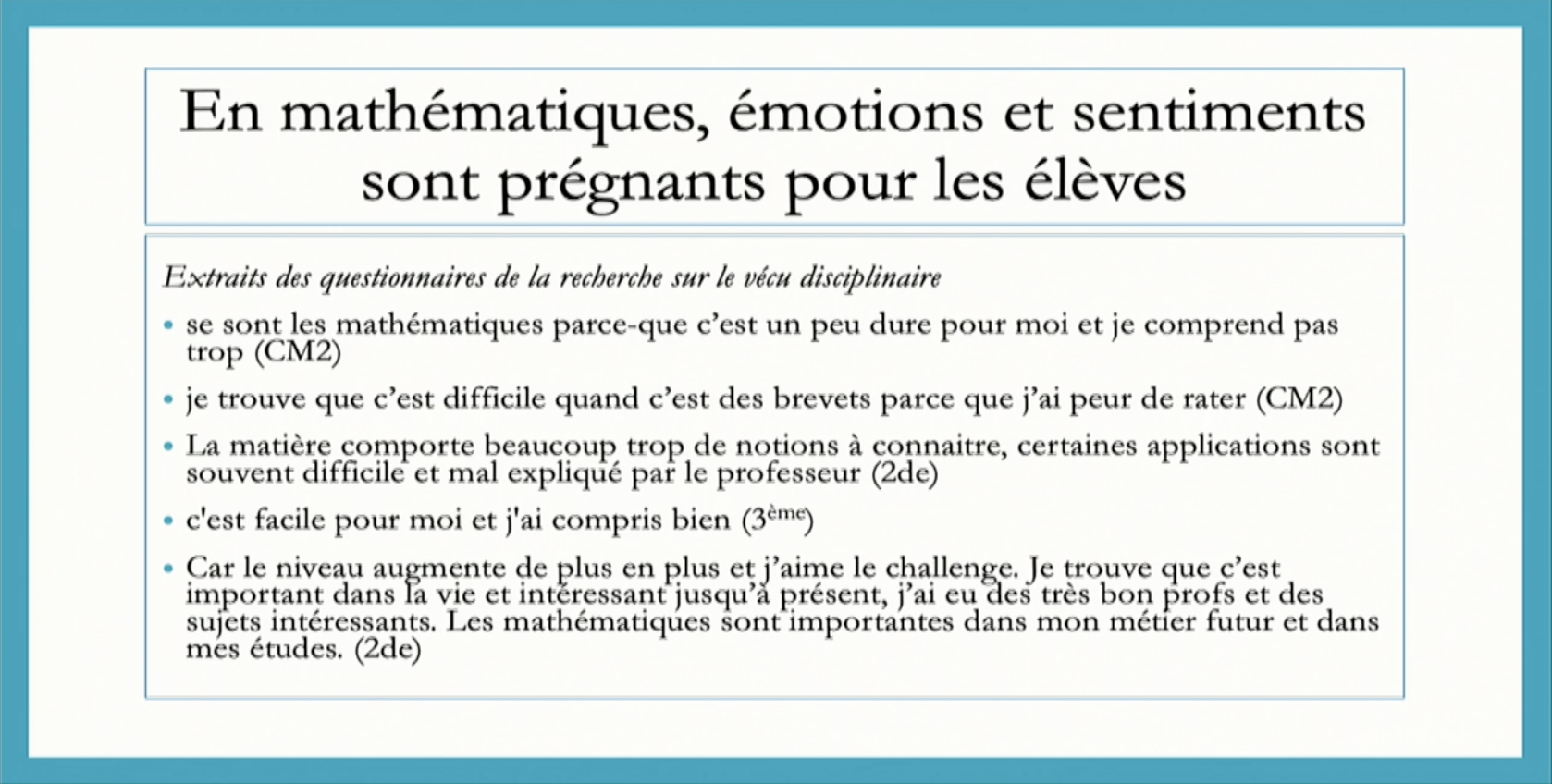 témoignages élèves émotions et sentiments maths