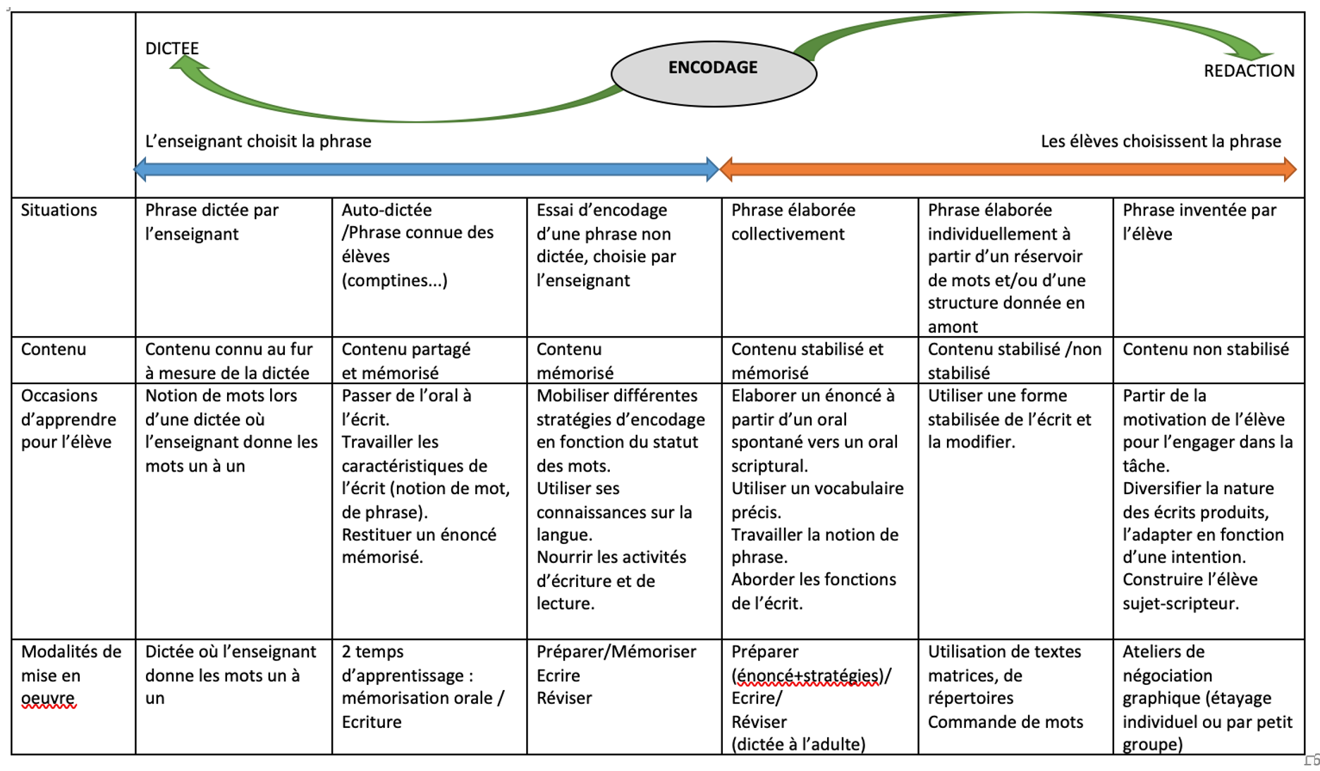 Tableau des situations d'encodage