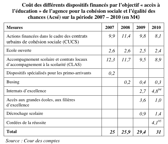 Coût des dispositifs "politique de la Ville" en matière d'éducation