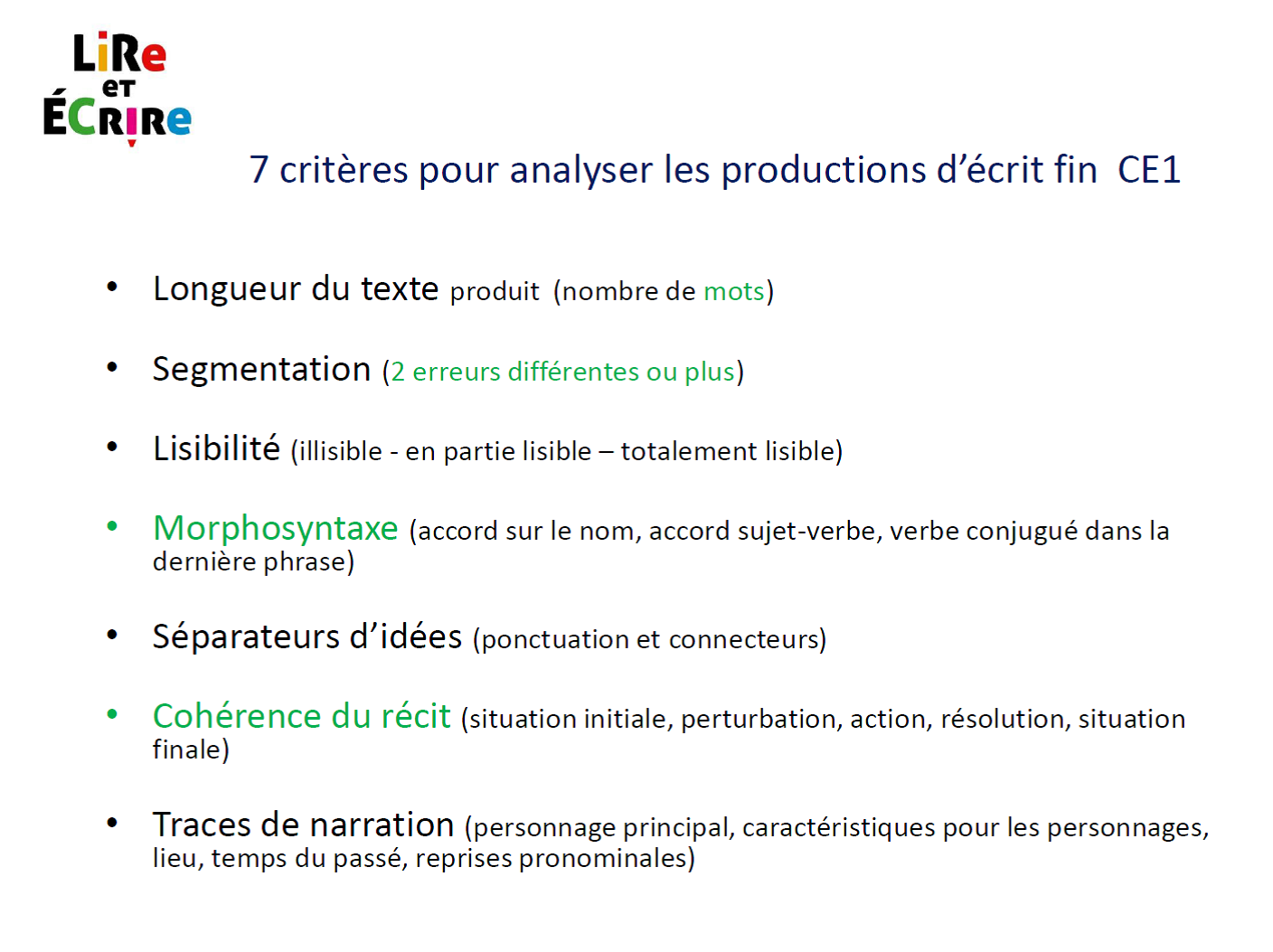 critère d'évaluation textes narratifs CE1