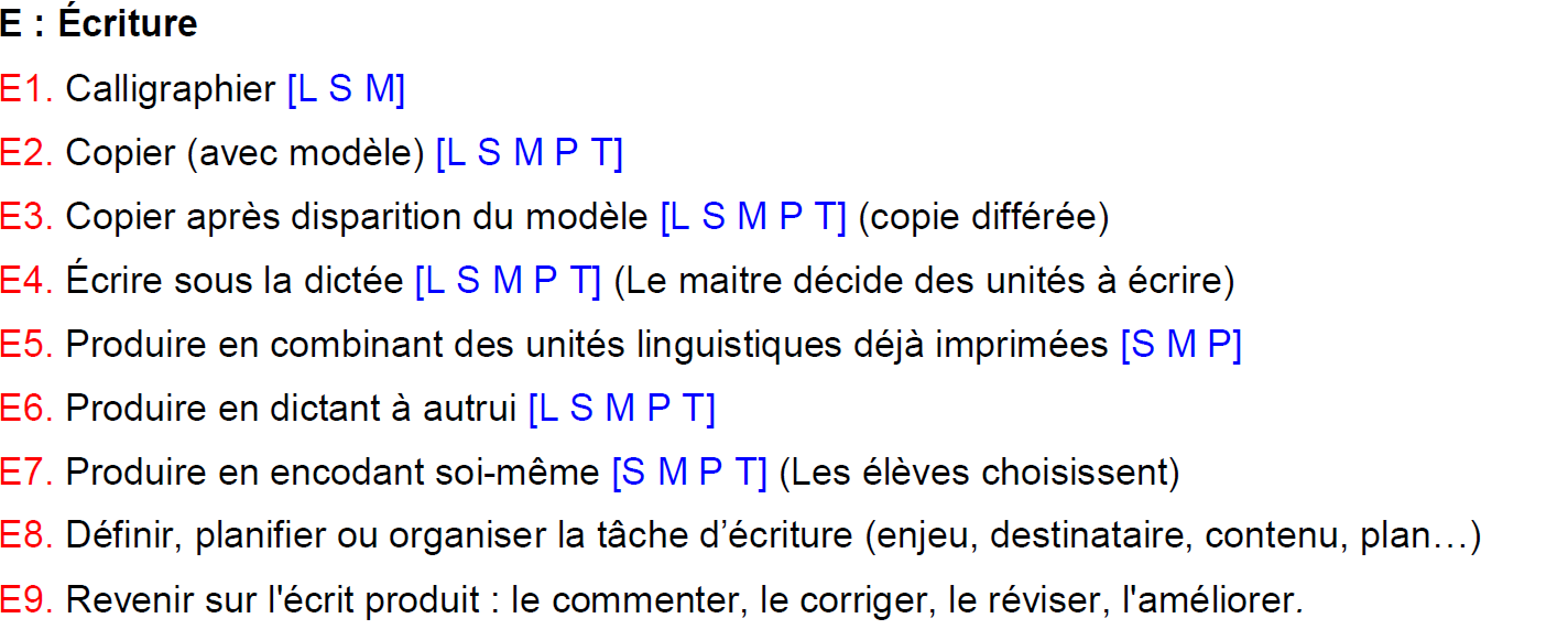 typologie des tâches d'écriture