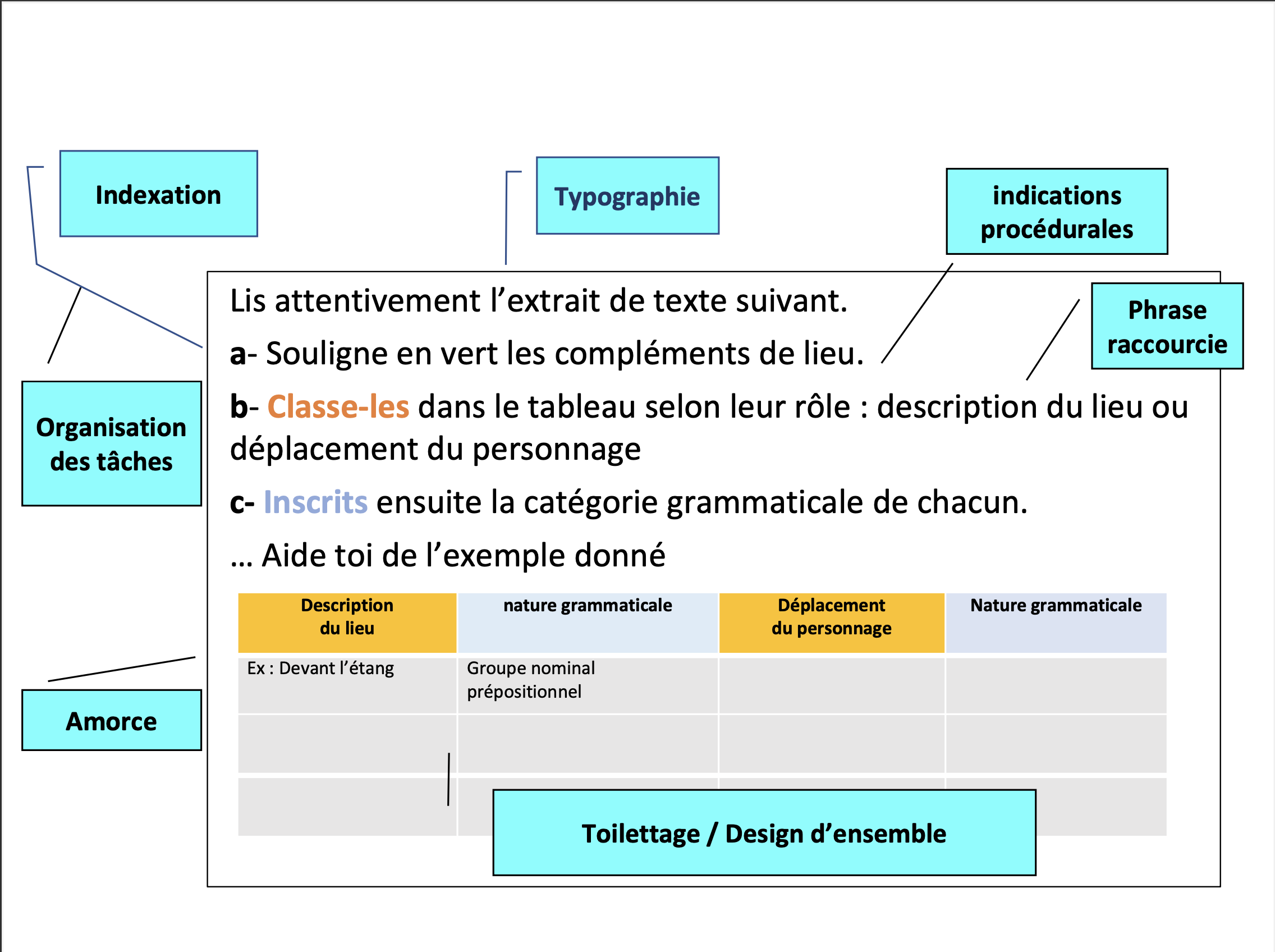 - les contenus, c'est-à-dire ce sur quoi la tâche va porter ;