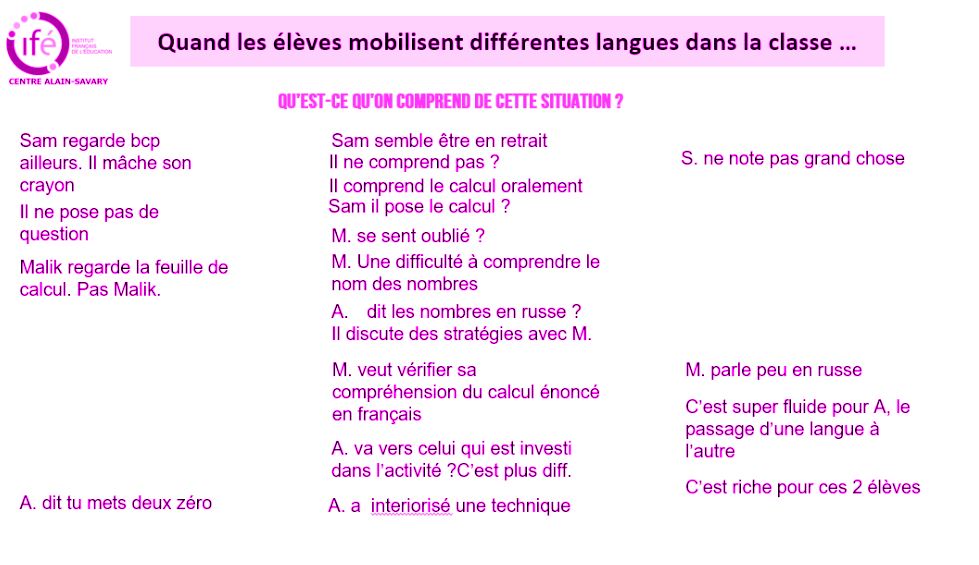 - constat : laisser les élèves parler d'autres langues sans les comprendre