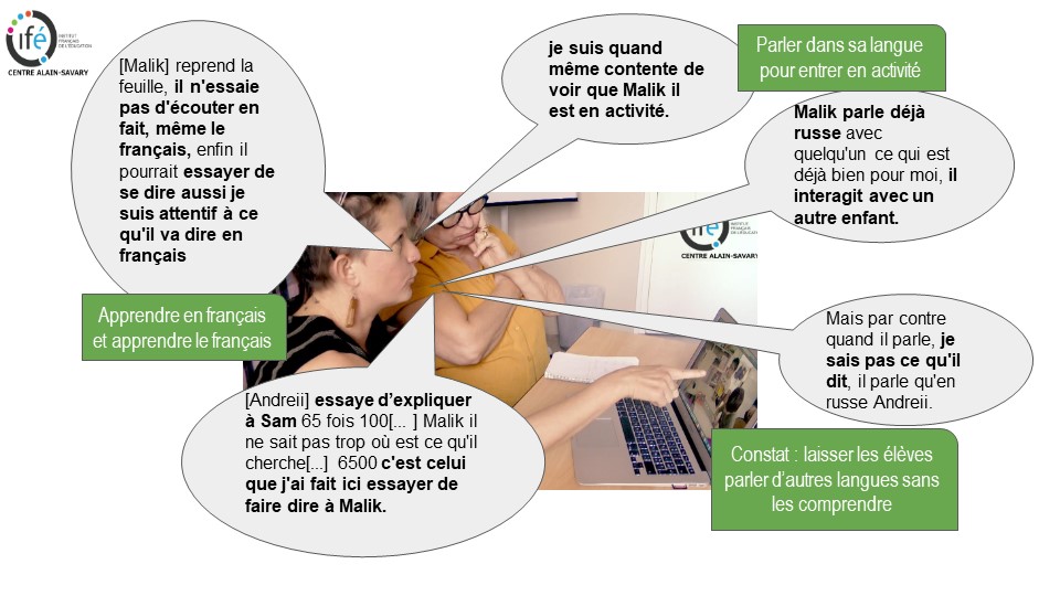 - constat : l'élève parle dans sa langue pour entrer dans l'activité