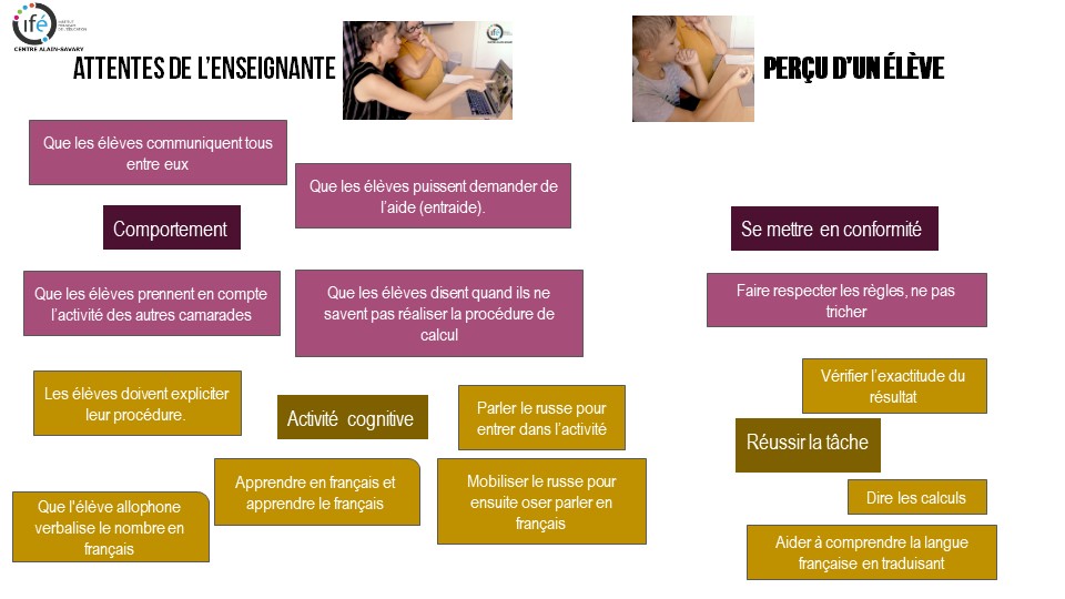 Confronter les attentes de l'enseignante et le perçu d'un élève.