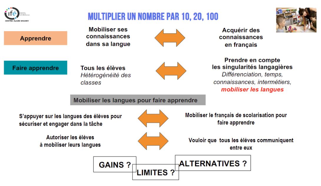 - Mobiliser des connaissances mathématiques dans sa langue tout en devant acquérir des connaissances mathématiques en français.