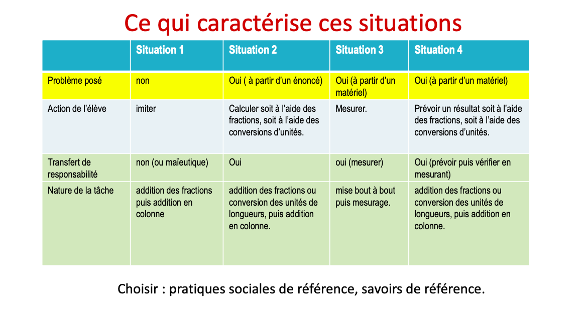 comparaison situations décimaux Briand 20En formation, on peut demander quelle situation les participants choisiraient. Le but est de les amener notamment à distinguer les situations 3 et 4 concernant le rôle de la manipulation.